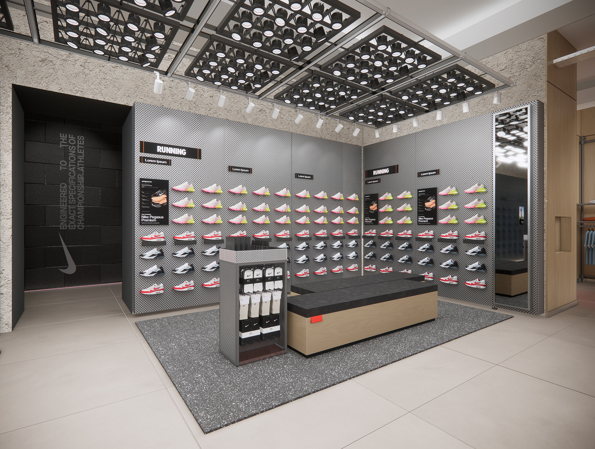 Rendering work for Nike's new retail design at Kings Cross, London.